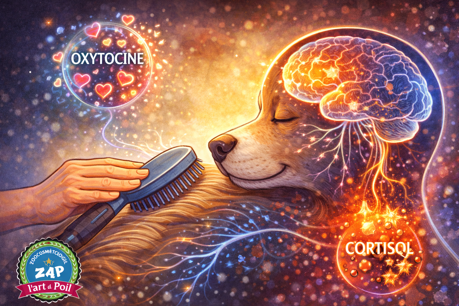 Brushing performed with awareness and technique can stimulate oxytocin production - the attachment and well-being hormone - while decreasing cortisol. But performed without this understanding? It can trigger the opposite effect.