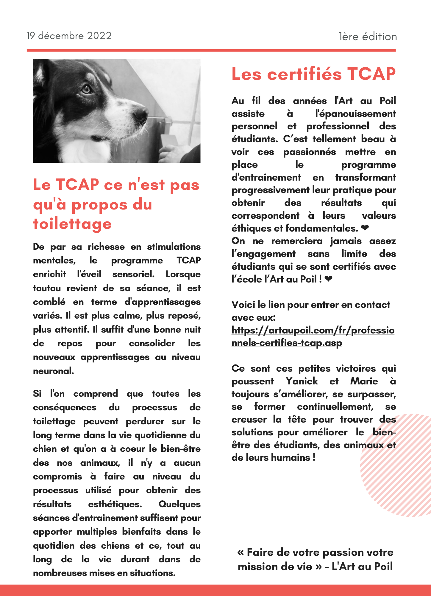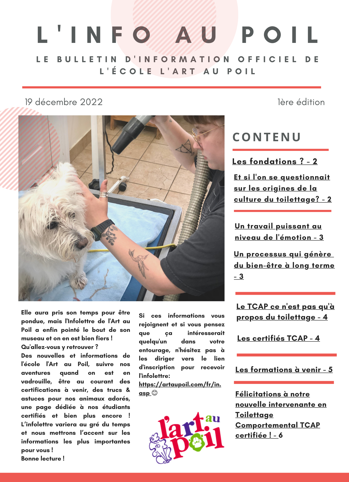 Note importante : tous les liens présents dans cette infolettre sont sur ce site internet. (bouton "Infolettre" pour s'y inscrire, liste de nos certifiés, formations à venir dans le "Calendrier de formation")