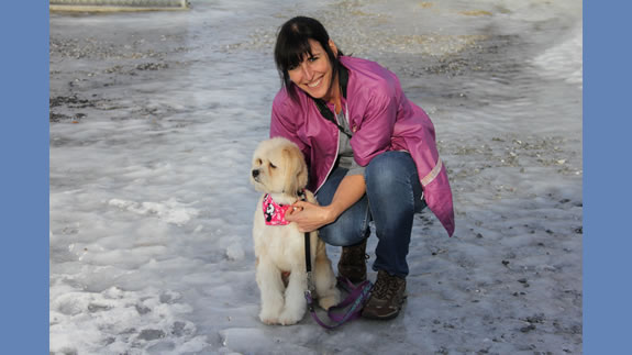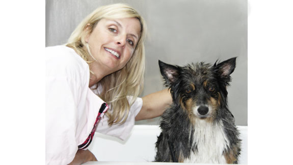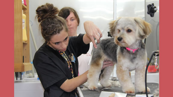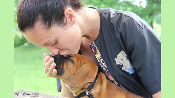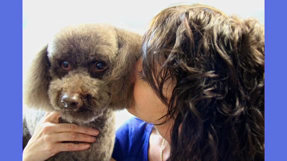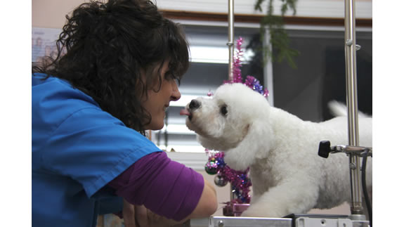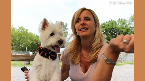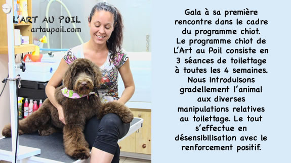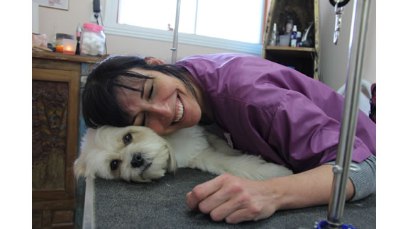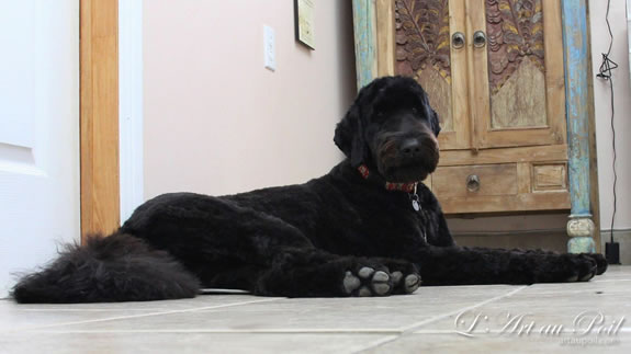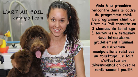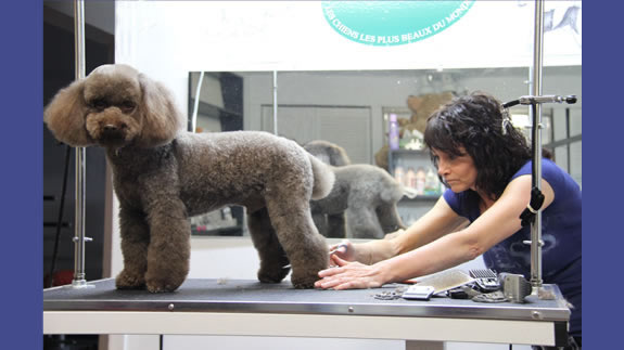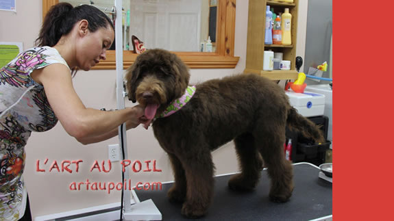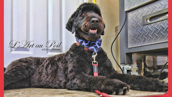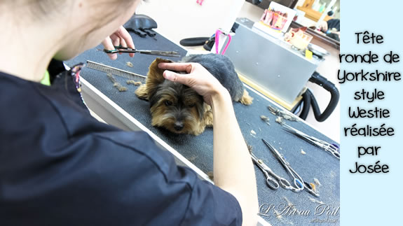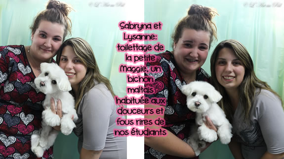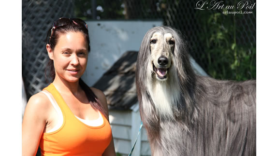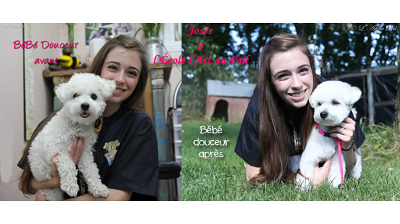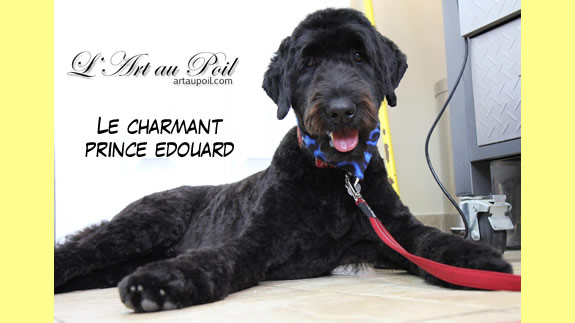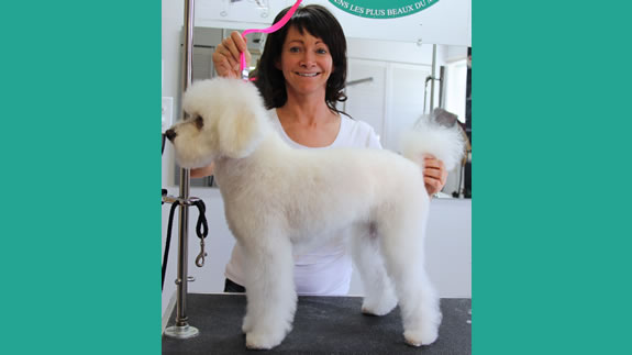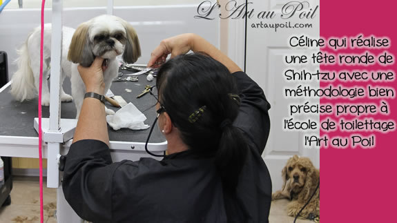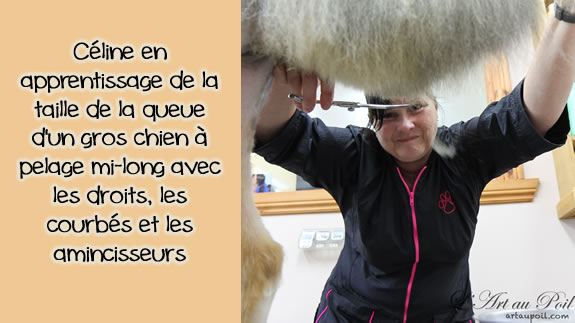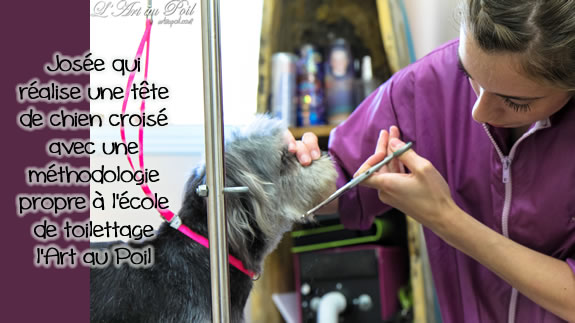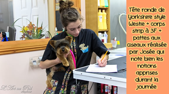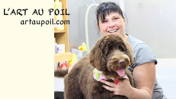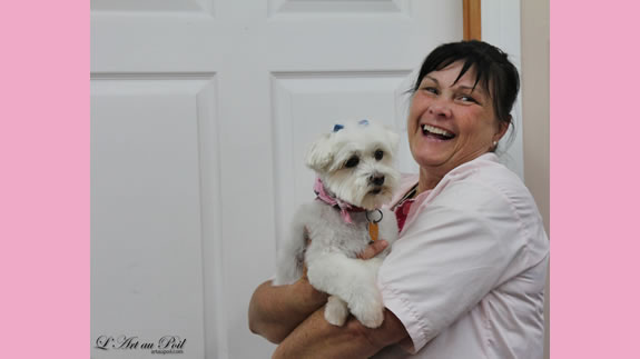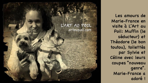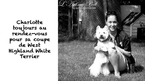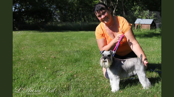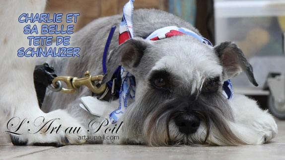 Céline qui a réalisé la coupe schnauzer de Charlie.